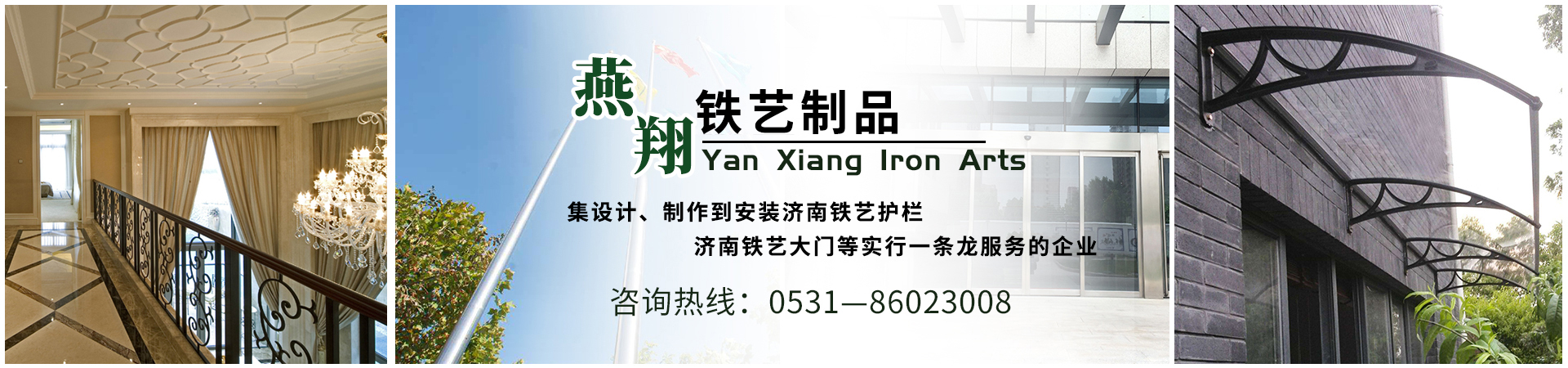 濟(jì)南燕翔鐵藝制品有限公司是一家集設(shè)計(jì)、制作到安裝濟(jì)南鐵藝護(hù)欄,濟(jì)南鐵藝大門等實(shí)行一條龍服務(wù)的企業(yè),具有高標(biāo)準(zhǔn)、高科技的管理模式,并有著多年的設(shè)計(jì)、生產(chǎn)、制作經(jīng)驗(yàn),工藝精湛。企業(yè)生產(chǎn)安裝各種不銹鋼系列產(chǎn)品:鐵藝樓梯、鐵藝護(hù)欄、鐵藝大門、鐵藝護(hù)窗、鋼梁雨篷、地下車庫(kù)雨篷、各式汽車自行車雨篷、鋼結(jié)構(gòu)工程、玻璃門、感應(yīng)門、幕墻等工程。制作各類不銹鋼異形、不銹鋼扶手、護(hù)欄、不銹鋼防盜門、...